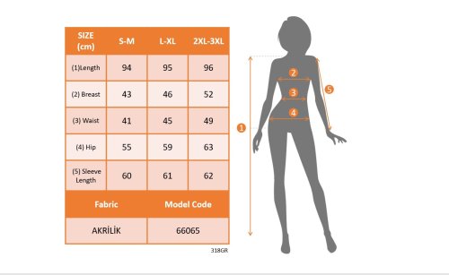 • Modelin Ölçüleri: Boy:165, Kilo:55, Göğüs:90, Bel:72, Kalça: 100