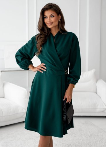 Kadın uzun kollu hakim v yakalı yandan toka detaylı ithal mini krep elbise